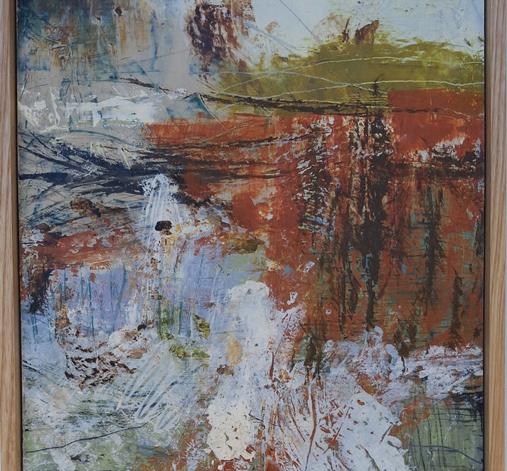 Painting in acrylics and its many mediums was Jane's go to for many years. Recently she has discovered the joys of layering, textures and the many manipulations of oil and cold wax medium. Her inspirations come from the landforms of her home on the Coromandel Peninsula and the South Island of New Zealand. Click on the image to get a full view.